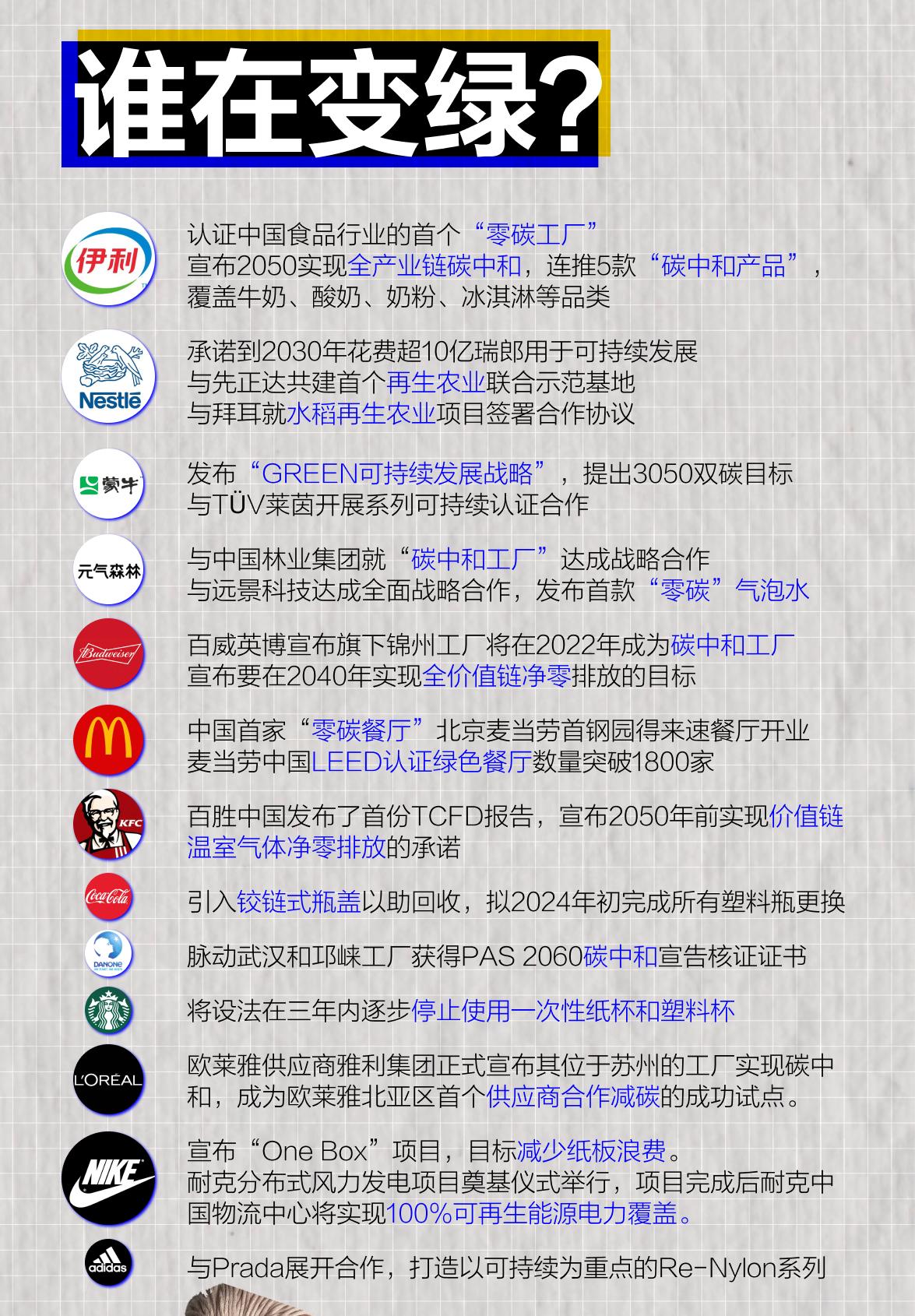 消费企业在“变绿”这件事上,从承诺到行动,都开始变得愈发激进。面对双碳这一时代命题,大公司无疑是推动产业可持续转型的超级主力。但这并非意味着小型初创企业毫无机会,事实上,每个传统的行业赛道都有可能进行一轮可持续汰换,在这一过程中,是大公司主导还是小公司奇袭,都未成定数。可以预见的是,可持续已经成为消费品牌讲述新故事的重要选项。