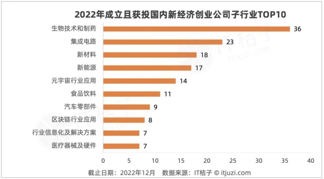 其中,生物技术和制药是 2022 年创业公司最多且获得资本投资最多的赛道,新成立就拿到投资的公司至少有 36 家;