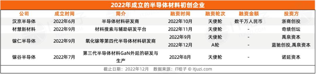 IT 桔子数据显示,2022 年有 4 家与半导体材料相关的企业获得了融资。