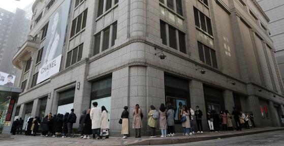 在Chanel专卖店门口等待开门的韩国年轻人,来源:News1Korea