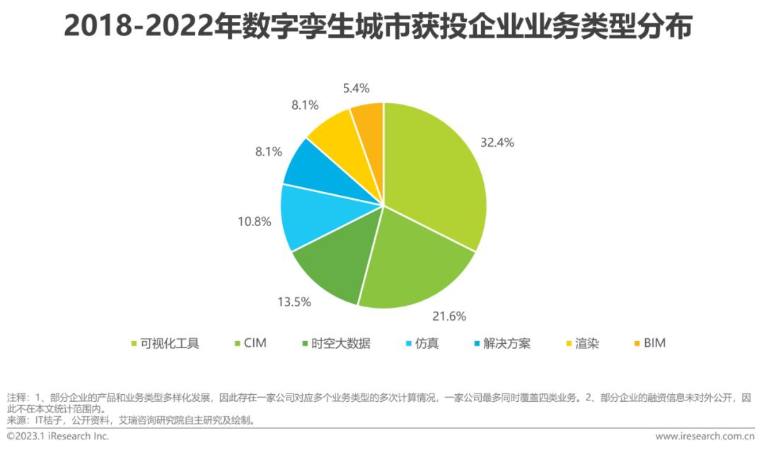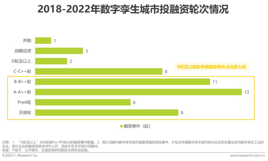 近五年获投的初创企业业务类型主要分布在可视化工具、CIM平台和时空大数据,其中布局可视化业务的企业占比近1/3,两方面因素形成了这一格局。一方面数字孪生城市是地理信息产业、数字建筑业和智慧城市的融合与建设延续,上游BIM、GIS行业和下游解决方案、集成商市场均存在高行业和规模壁垒,另一方面可视化作为支撑性、通用性产品与技术是投入产出比最大、最快实现商业变现的赛道。过往融资轮次集中在早期阶段,可见我国数字孪生城市初创企业多处在成长期。