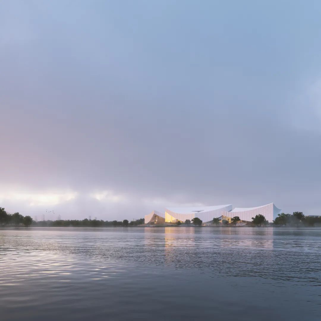 克麦罗沃博物馆剧院综合体将成为一个新的文化热点、未来克麦罗沃城市景观中的地标建筑。该项目的形式语言融合了现代歌剧院与博物馆建筑的理性结构和布局,同时也将现代主义建筑的“流动性”空间元素纳入其中。综合体的设计也让这一文化场馆能够同时开展不同类型的活动,最多可容纳 2282 个参与者。建筑主体通过清晰的功能布局,组成了一个具有辨识度的整体,并自在地与周围环境融为一体:其中有优雅“飞翔”的剧场云、包含博物馆、艺术中心和餐厅的“水晶体”、以及一个与 24 小时门厅相连的公共餐厅。