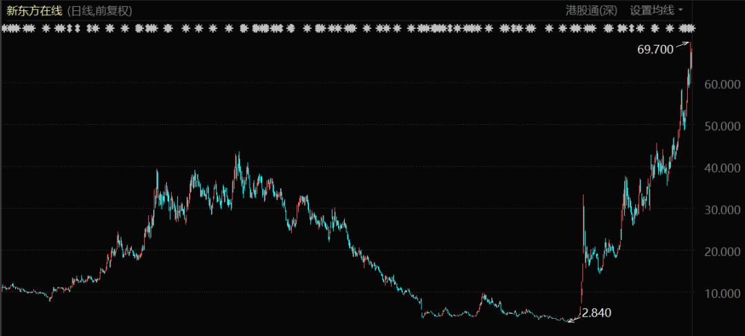 主播出圈带火东方甄选,港股股价从2.8港元飙涨到69.7港元,新东方绝境逢生。