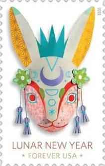 (美籍华裔插画家 Camille Zhou 设计的兔年邮票,来源:美国邮政总局)