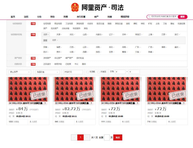 (2022年整版金猴票成交价格,来源:阿里拍卖网)