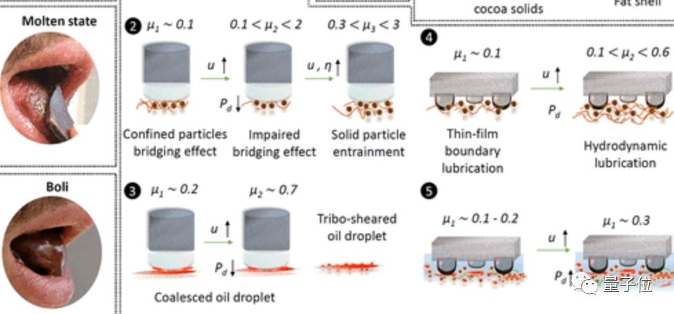 在微观层面,这个过程被称作是由固体脂肪主导的润滑,而随着唾液分泌的增多,固体脂肪主导的润滑也会变作唾液主导的水润滑,这时摩擦系数相对来说就会变大。