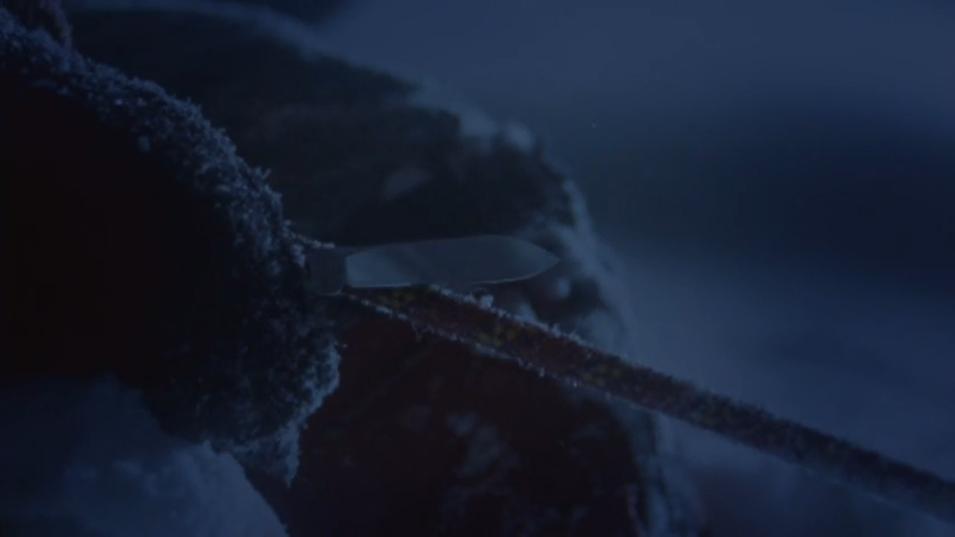 事情发生时,有很长一段时间我只是挂在绳索上坚持着,希望乔能把他的身体从绳索上移开,让我可以移动位置。想起登山包顶部有一把刀的时候,我已经筋疲力尽,没办法再拉住他。我知道自己已经做了预期中能做的一切去拯救乔,而此刻我们两个人的生命都受到了威胁,我不得不先拯救自己。尽管我知道这么做可能会导致乔死亡,但还是凭直觉在一瞬间做出了决定。我只是觉得这么做是正确的,和那次攀登中我做出的许多关键决定一样。我没有犹豫,从包里拿出刀,割断了绳索。