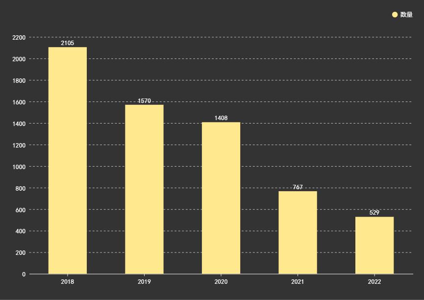 2022年共有529个版号过审(以游戏产品多端分开算),较2021年(767)同比减少约31%。再之前,2020年有1408个,2019年有1570个,停发9个月的2018年有2105个,总量逐年减少并在2022年达到新低。