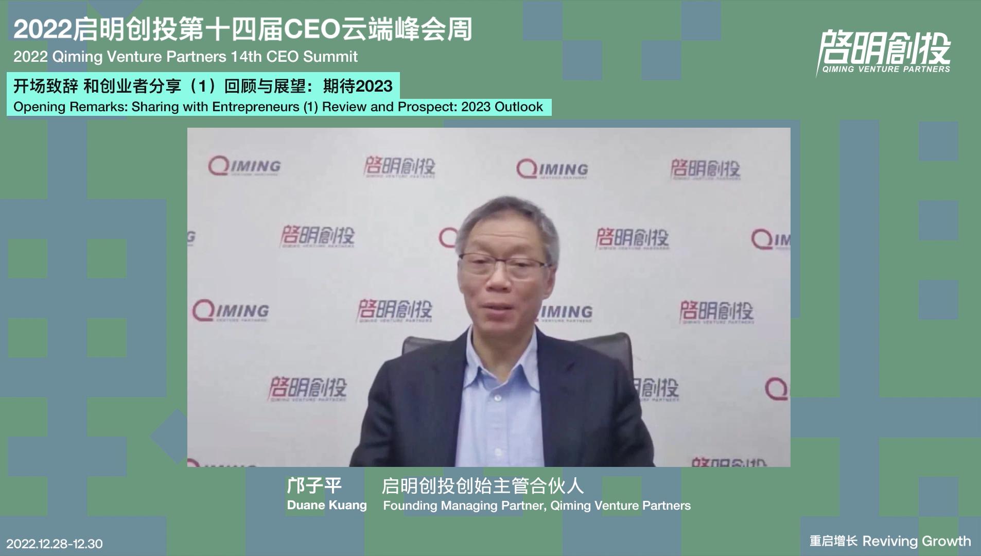 在展望未来时,邝子平表示,2023年将是充满不确定性的一年,中国仍将面对很多国内国际的挑战,一些被疫情暂时掩盖但并没有得到解决的发展模式转变过程中的阵痛仍在,但2023年也是值得期待的一年,后新冠时期的中国孕育着很多发展的机遇,无论是消费的回暖,全社会对科学技术的拥抱,还是投融资活跃度的提高,都在呼唤有理想,有抱负,有才华的中国企业家。