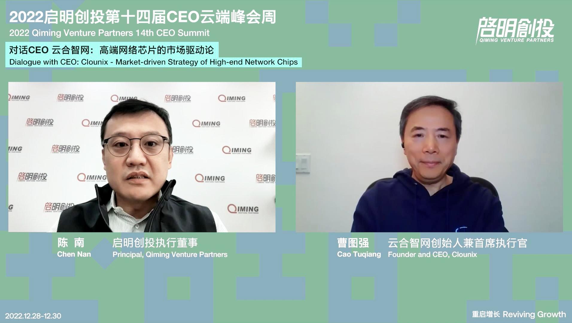 就“高端网络芯片的市场驱动论”这一主题,启明创投执行董事陈南与云合智网创始人兼首席执行官曹图强展开深度讨论。曹图强介绍了云合智网的创办过程,进一步分析了在中美两地建立科技初创公司的差异。曹图强曾任500强企业全球高管,亦是创业者,他总结了美国硬科技创业公司的典型成长路径及可借鉴的经验。曹图强指出了市场和客户对云合智网的重要性,并表示云合智网的研发团队、市场团队和销售团队会永远尊重客户的要求,会在不同代际的产品线中体现客户需求的新变化,因为抓住市场契机对云合智网在中国市场占有一席之地,扩大市场份额是至关重要的。