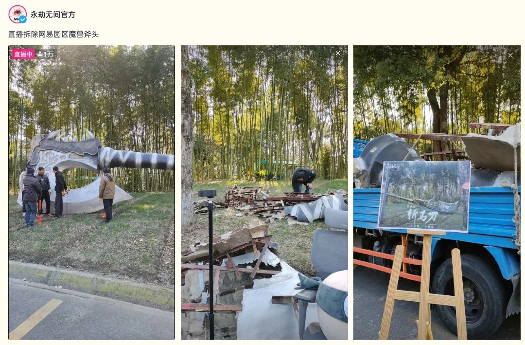 于此同时,网易的永劫无间也悄悄搞起了室外装修工作。由于网易和暴雪之间的合作协议即将到期,网易决定拆除位于网易园区内的血吼模型,换成永劫无间的斩马刀。并且,永劫无间官号还在抖音上直播了拆解血吼的全过程。