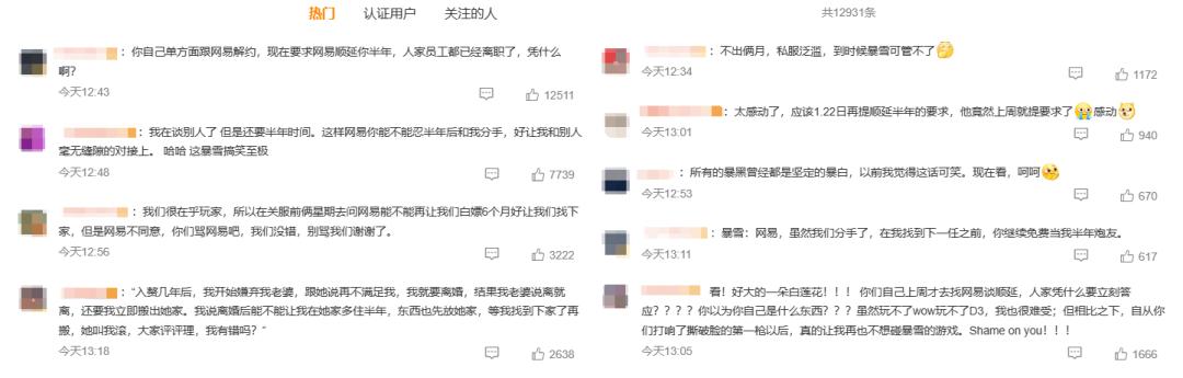 与此同时,由于网易暴雪事件在游戏圈内备受关注,让“暴雪中国再次发文”和“网易称暴雪离婚不离身”等词条在短时间内先后登顶微博热搜,截止发稿前,暴雪最新微博共累计3.4万条评论。在评论区中,我们还可以看出不少游戏玩家就此次事件对暴雪的关注溢于言表,其中不少精彩评论更是堪称字字珠玑,句句斟酌。
