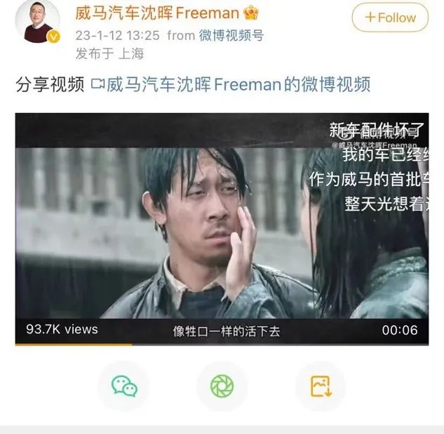 值得一提的是,就在威马汽车宣布与Apollo出行达成战略并购的同一天,威马汽车创始人、董事长兼CEO沈晖在微博分享了一段电影《芙蓉镇》中的片段。在视频中,唯一一句出现的台词是,“活下去,像牲口一样活下去。”
