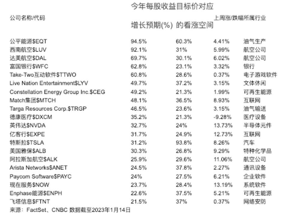 这20只股满足以下条件:公司2023年的盈利增长预期大于20%(部分个股的盈利增长预期超过了90%);根据分析师给出的一致目标价,这20只股获分析师看好再涨至少20%。