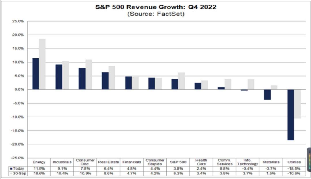 同样,收入预期也令人担忧,市场预计,标普500成分股Q4公司收入将较上年同期增长3.8%。这个数字意味着是自2020年第四季度以来报告的最低年化收入增长。
