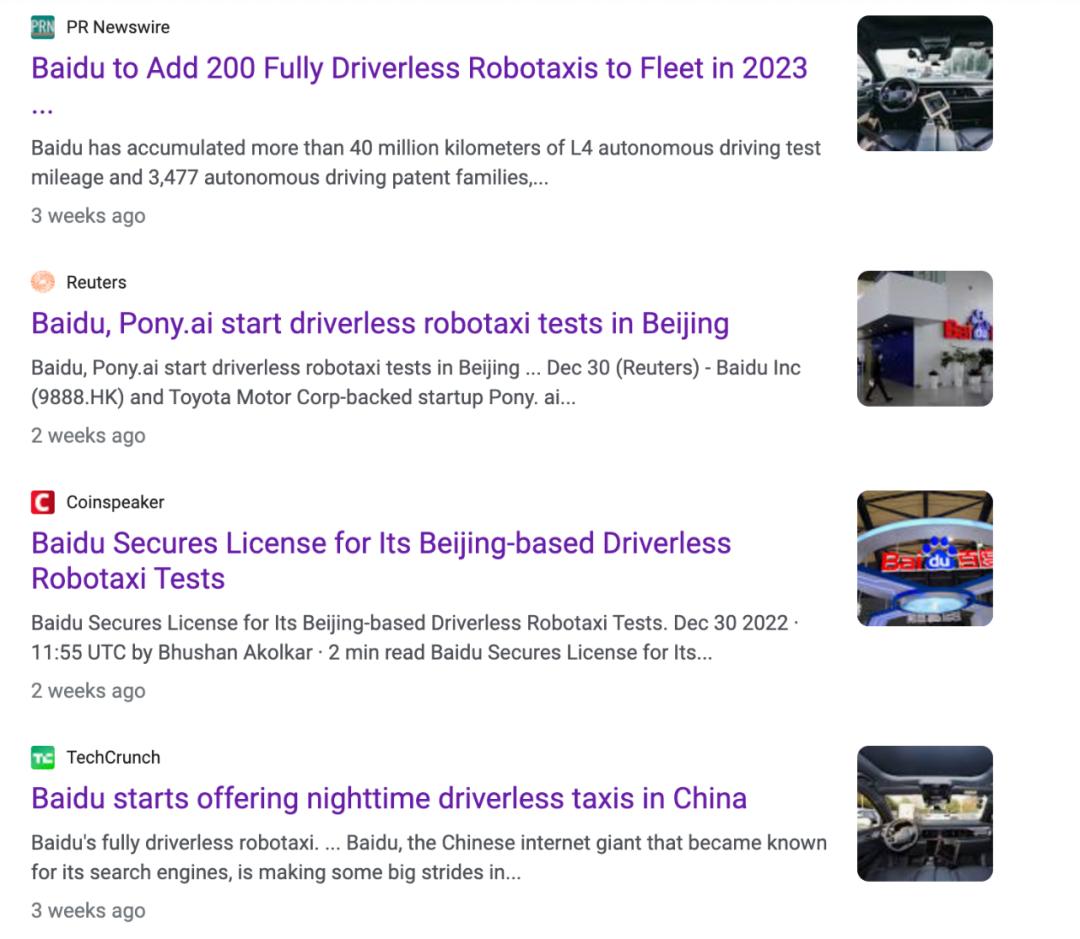 像是例行任务一样,直到2022年,百度和小马等企业还是会定期在国外各大媒体平台上,放出Robotaxi已经在中国大面积上路的信息。