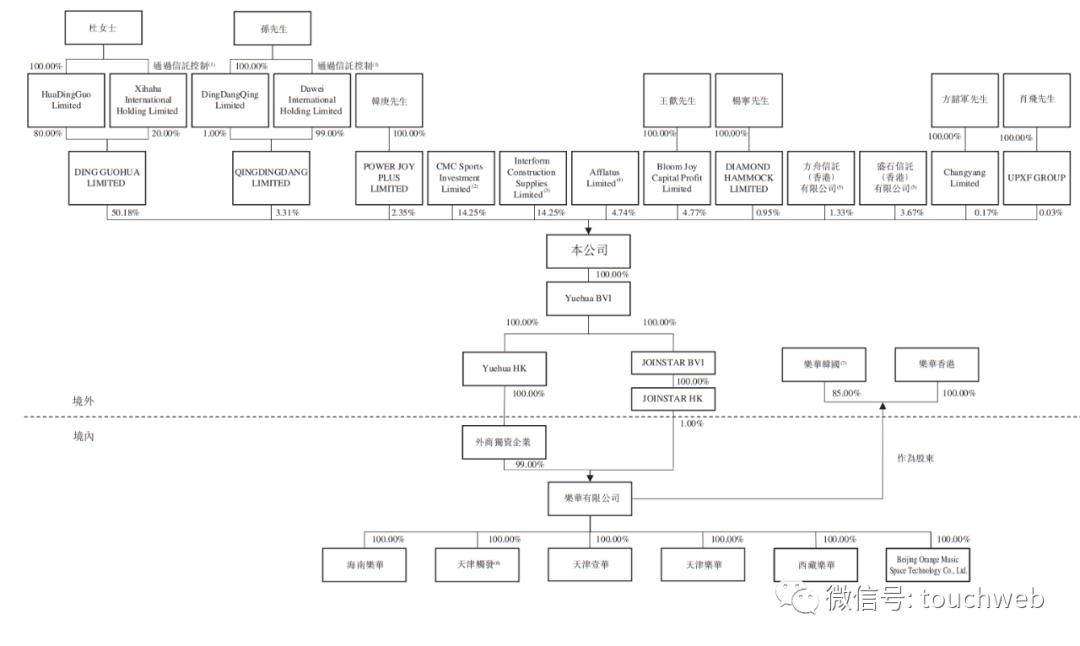 IPO前,华人文化CMC持股为14.25%,东阳阿里巴巴影业通过Interform Construction持股为14.25%;
