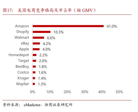美国电商竞争格局及市占率,来源:浙商证券研究所