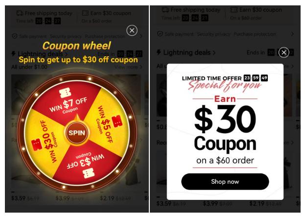 此外,Temu接连推出“1美分选1”及“用户晒单赢奖金”活动,新人注册后,订单满60美元将获得满减30美元的优惠券。