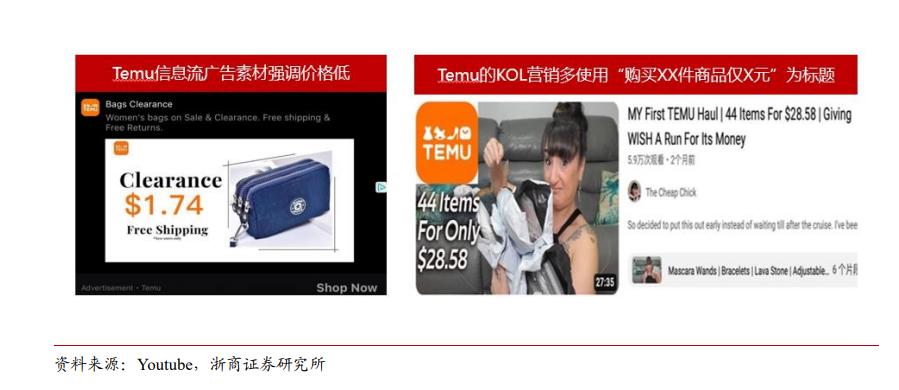 Temu信息流广告、KOL营销素材,来源:浙商证券研究所