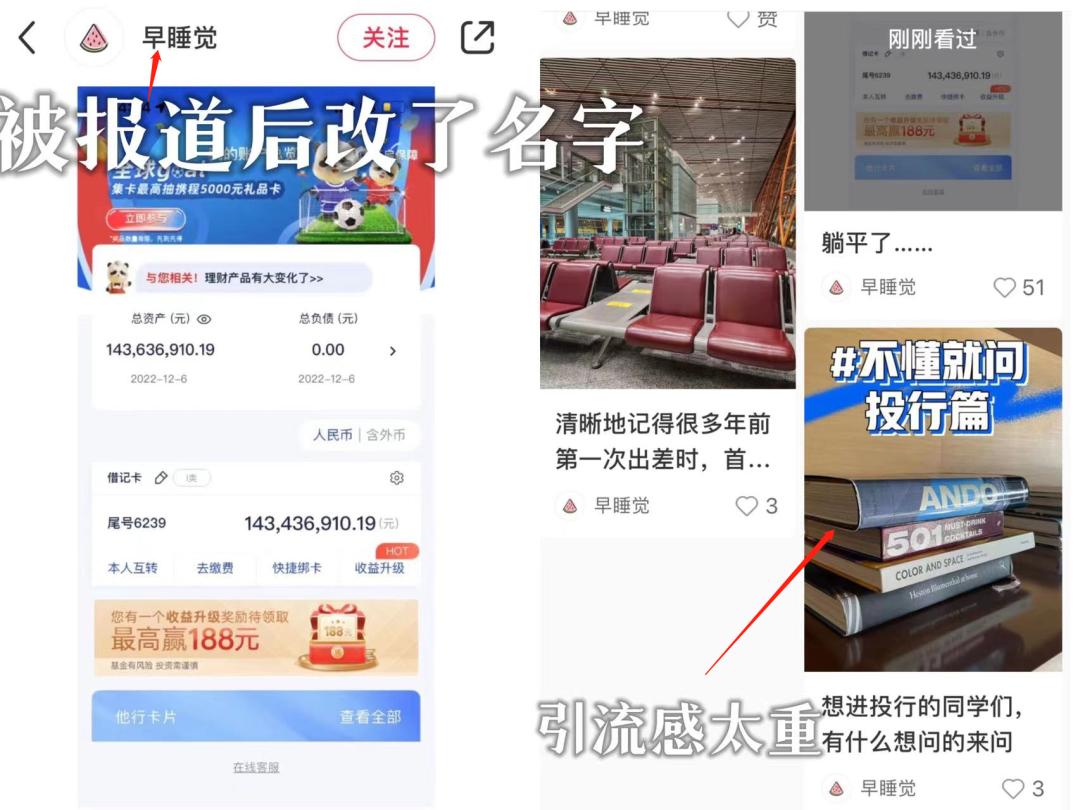 事情的起因是这样的,小红书博主“king先生”发帖称:“投行MD银行卡余额1.4亿元!”