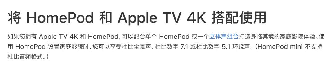 [3]使用 HomePod mini 或 HomePod 和 Apple TV 4K 设置家庭影院音频.https://support.apple.com/zh-cn/HT207705