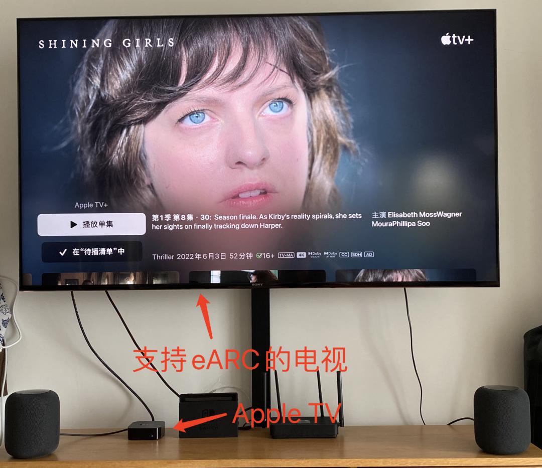 而作为增强音频回传(eARC),更大的带宽和更快的速度可以实现传输高保真音频。有了这个功能,Apple TV就可以抽取电视甚至是游戏主机中的音频推送到HomePod上,让HomePod真正成为电视的音响。