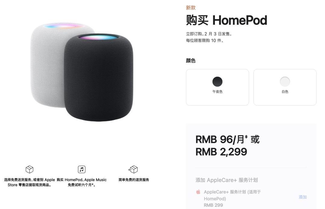 这款被称为苹果“最保值产品”的全尺寸HomePod在停产2年后,于昨晚无预警上线官网,售价2299元。