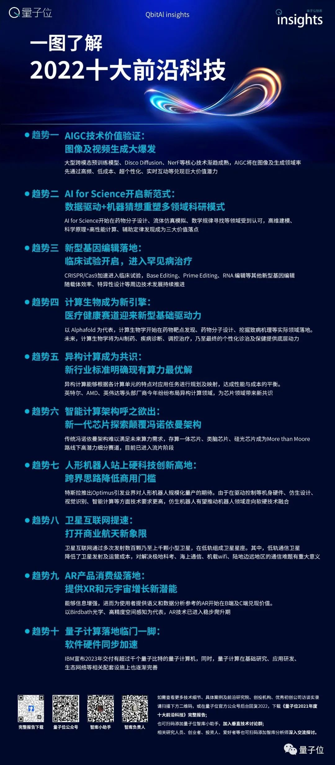 量子位智库结合对科技领域的长期跟踪,以及对70余家初创公司、研究院、投资机构的深度交流,提名了2022年度十大前沿科技趋势。