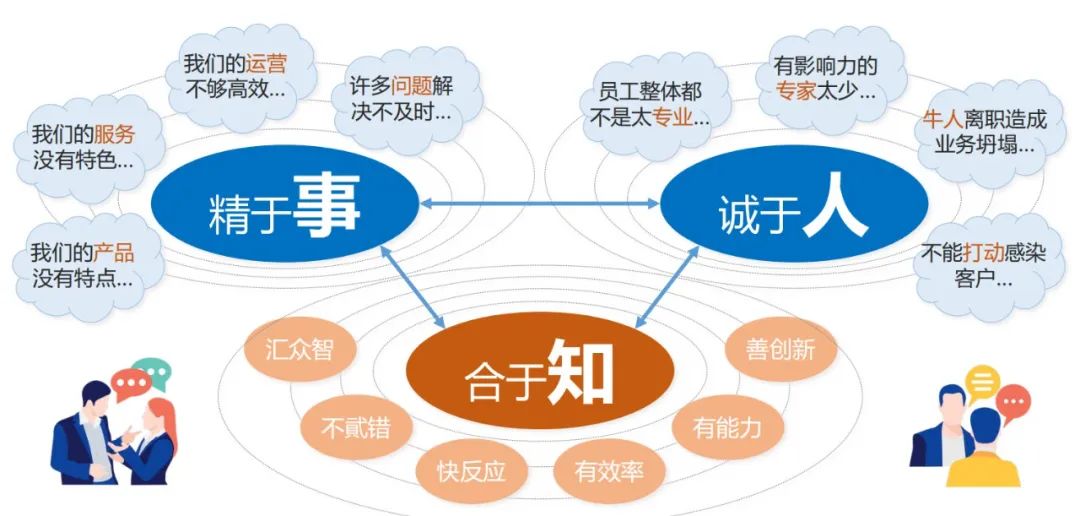虽然很多公司在事和人的方面做得很不错,但是还需要达到合于“知”的层次,真正实现专业度的支撑,创新且高效地做事,体现出专业能力的影响力度。通过知识的复用及改良,能够把现有的存量打透。