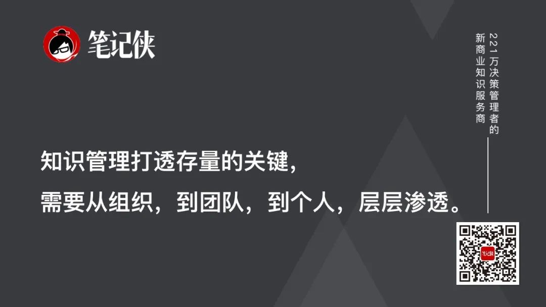 一定要有意识的构建知识管理体系,以知识为核心作为管理对象,把外围运转的关键知识活动,比如从识别、获取、创造、存储、共享到应用,高效的循环起来。