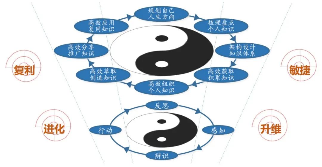 知识螺旋思维是基于感知、辨识、行动和反思,持续层层升级的过程。