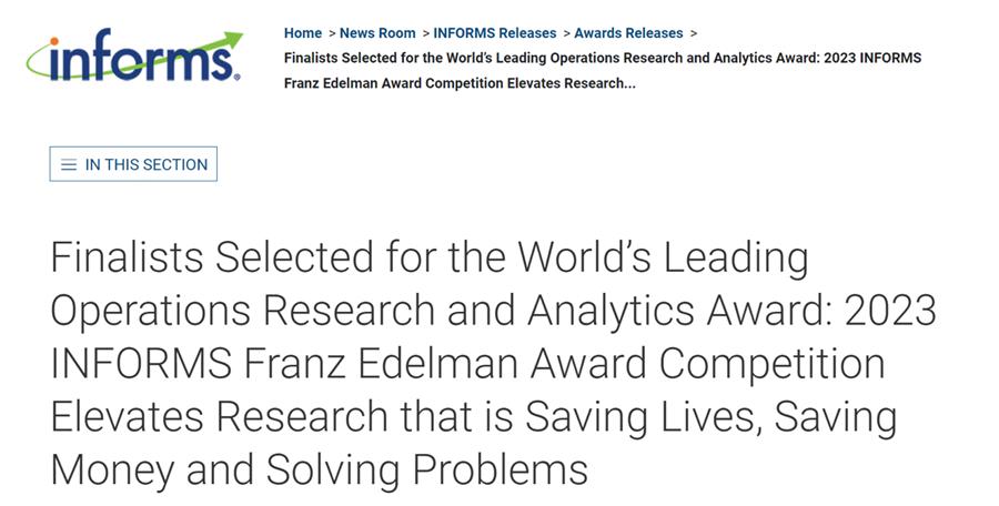 Franz Edelman奖是全球运筹和管理科学界的最高奖项之一,自1972年首次设立,至今已逾50年,被誉为工业工程界的“诺贝尔”奖。该奖项重点奖励世界各国、地区,在运筹和管理学领域做出突出贡献,并带来重大应用价值的研究项目及成果。入围者在学术上实现创新的同时,还需要在实际落地中明确产生价值,Franz Edelman奖的历届获得者,对于如何解决那些世界上最复杂的问题,给出了探索和实践。