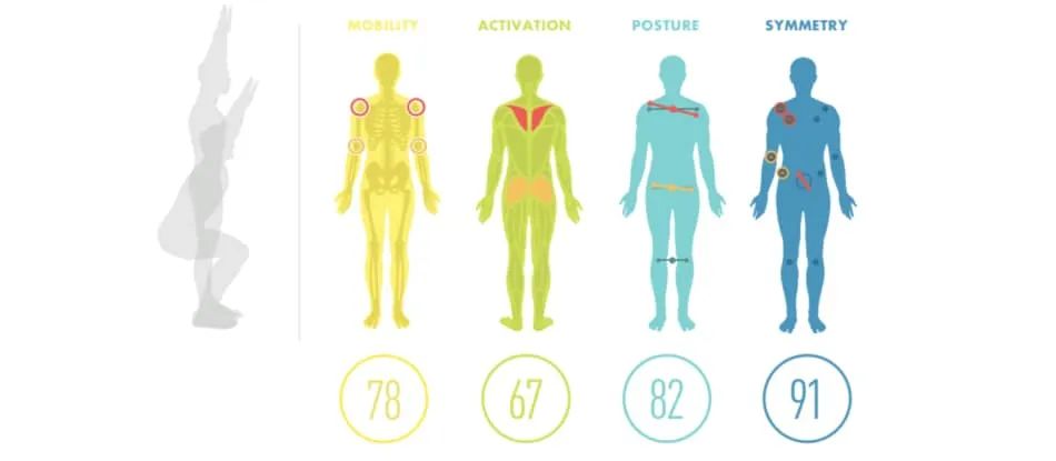 比如StretchLab会对顾客进行 Physmodo MPAS 动作捕捉,对身体的「灵活性」「肌肉激活」「姿势」和「对称性」评估打分,从而定制相关的拉伸课程。