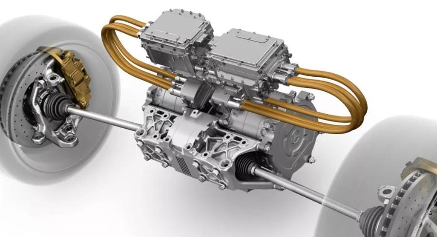 说完轮毂电机,我们再来看看轮边电机。顾名思义,轮边电机就是被放在车轮旁边的电机。它和传统电机比较像,还是需要通过传动轴把动力输出到车轮,只不过是电机数量更多而已。