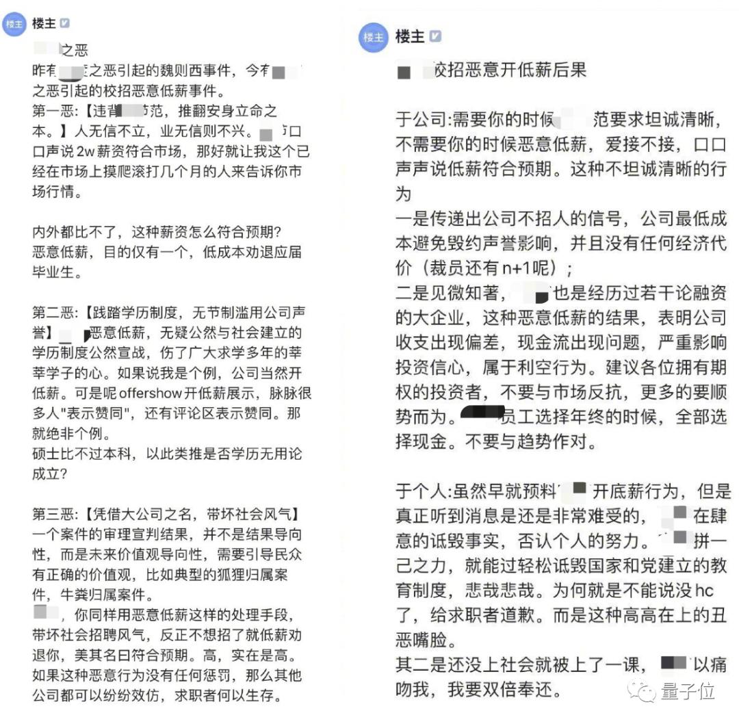 随后,原博主又在原贴下面长文“控诉”,包括大厂此举的“三大恶”,恶意开低薪后果等内容。