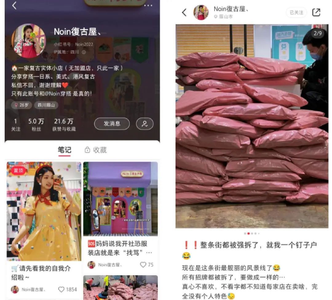 2022年5月,羊羊正式把店铺图片和服装搭配PO上了小红书和抖音,没想到一下子就爆了:小红书笔记浏览过万,微信被加到账号频繁。