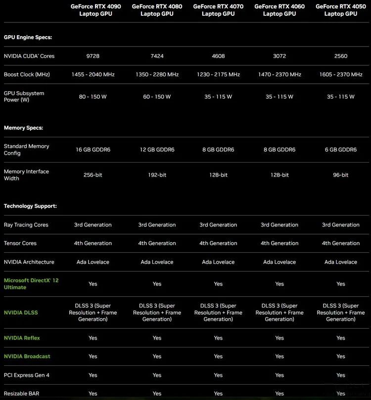 从官方公布的相关数据来看,Mobile版(或者说非MAX-Q版)的RTX4050最高TDP可以到115W,隔壁AMD的非低功耗版(也就是非“S”版)的RX7600M情况要略好一些,但官方标称TDP也高达90W。