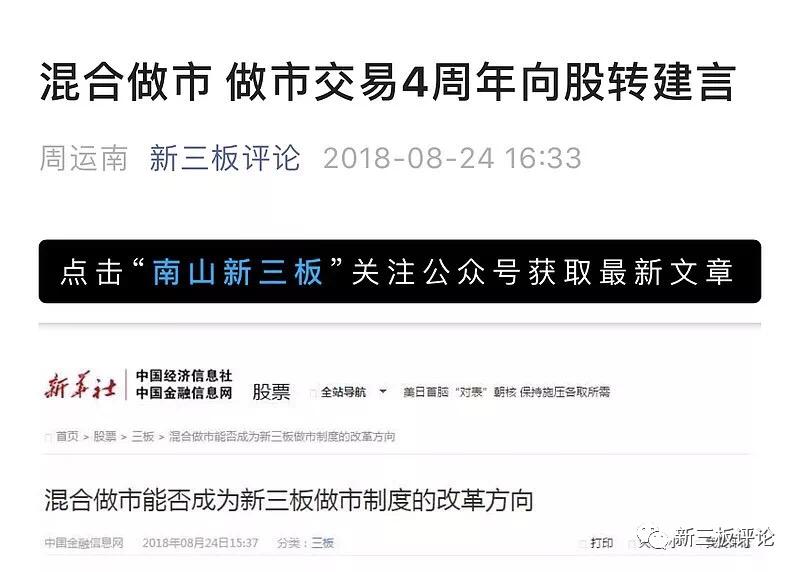新三板评论作为最早关注和呼吁混合交易的投资者和自媒体,从2018年就开始写了多篇文章,建议在新三板、精选层、北交所实施混合交易。如今北交所终见花开,在此也希望混合交易北交所成功运行一段时间后,也能在新三板推出“做市十集合竞价”的混合交易。