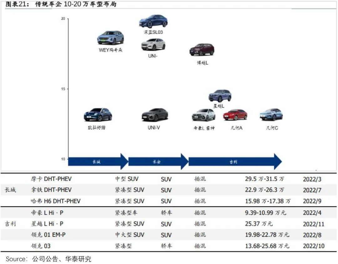 一方面,传统车企陆续发力10-20万价格区间的新能源产品,特别是加快了对混动领域的布局。