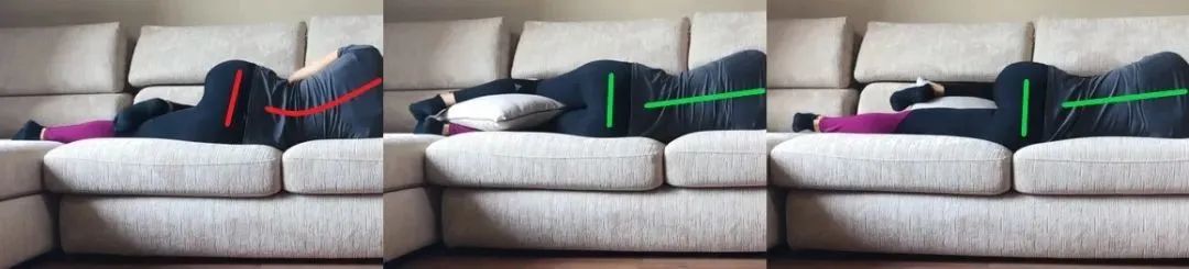 与侧卧相似,仰卧也需调整床垫硬度和枕头高度(枕头稍低于侧卧),以保证脊柱的自然曲度[8]。腰不舒服的人可以试着在膝下加个垫子,让膝稍弯曲。