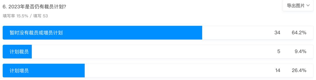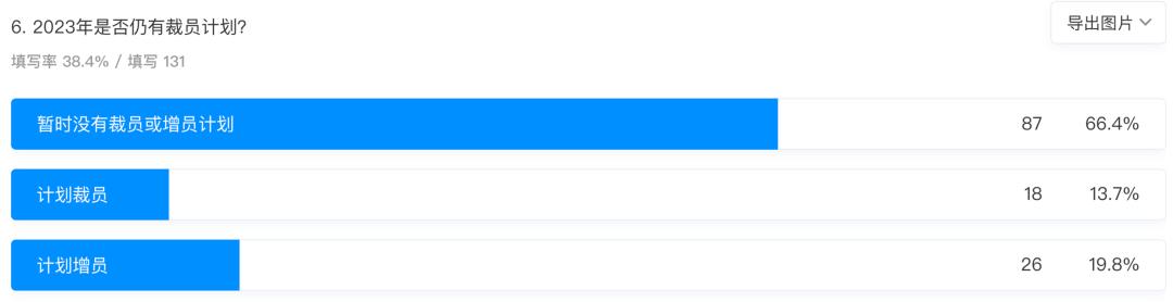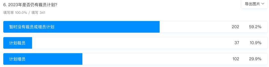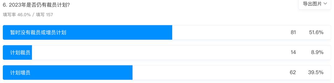 不管是什么规模的公司,都有超过一半以上没有裁员或增员计划。显然2023年存在不确定性,更多公司会比较谨慎,边走边看。
