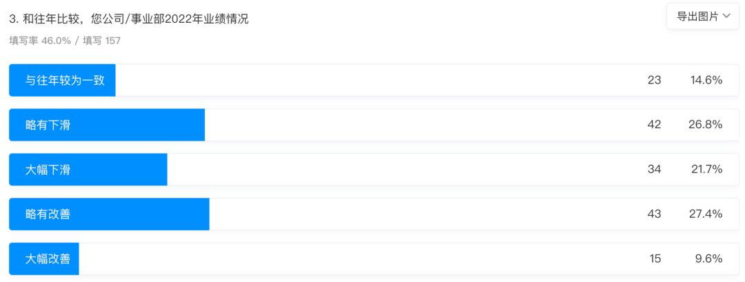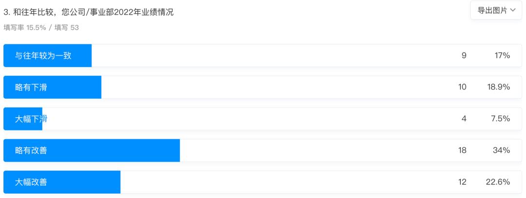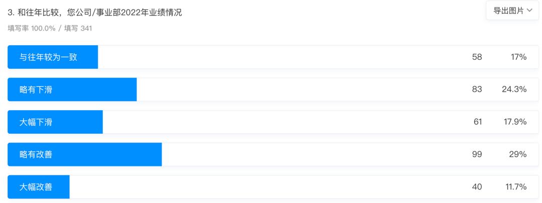 调研问题3:和往年比较,您公司/事业部2022年业绩情况
