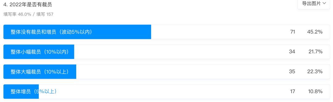 虽然业绩大幅下滑的企业比例只有17%,但是裁员的企业比例却高达50%。