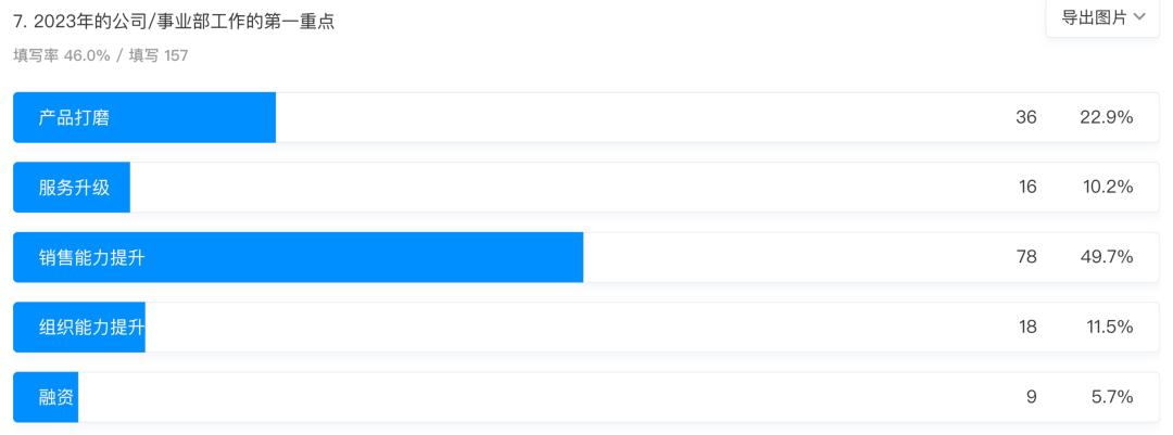 用SaaS高管群一位群友的话来说,就是:“产品可以不迭代,但总要销售出去。”2022年裁了产品和运营,2023年进一步加强销售。这似乎能说明,小微企业以定制化为主,销售导向非常明显。