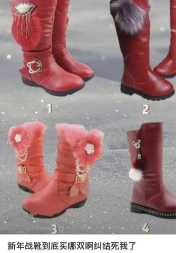 很像小时候妈妈破例带全家去镇里的时尚服装店,挑一轮新棉袄、新围脖、新手套,小男孩的厚马褂、小女孩的斗篷貂,还有这些天突然席卷网络的大红靴子,闪钻流苏与毛球蝴蝶结,全国90后的共同记忆又多了一个。
