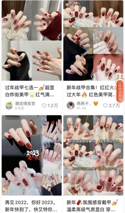 小红书上搜索春节染发,满屏奢华的浆果红、树莓红、复古红、海王红、湄拉红,博主们晒出不同光线下、不同日期里的掉色状况,试图做好万全的测试、给足十分的参考。