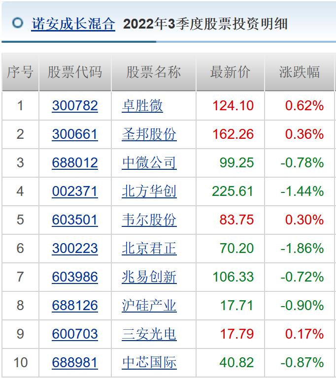 翻开诺安成长混合的持仓,可以清楚地看到,前十大重仓股,清一色的半导体芯片个股,一只混合型基金买成了半导体指数基金。