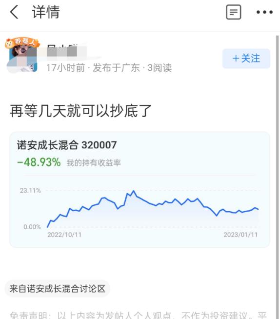 2022年蔡嵩松是伤透了基民的心。不少基民在基金社区晒出持有诺安成长混合的收益,亏损超40%的也大有人在。