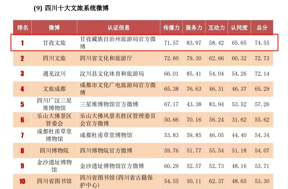 2022年度·四川十大文旅系统微博排名 图源:微甘孜
